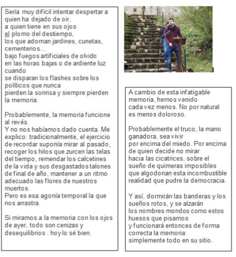 ESPACIO TANGENTE y la ASOCIACIÓN CULTURAL DENUNCIA organizaron el 7 de abril de 2018 en Burgos una jornada de apoyo a la Asociación de Familias de Represaliados en Valdenoceda
